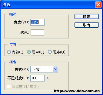 7、使用矩形选区工具做如下选区:使用菜单[编辑/描边]命令,可弹出描边对话框,设置描边宽度为1像素,颜色为白色。描边后删除选区(Ctrl+D)。