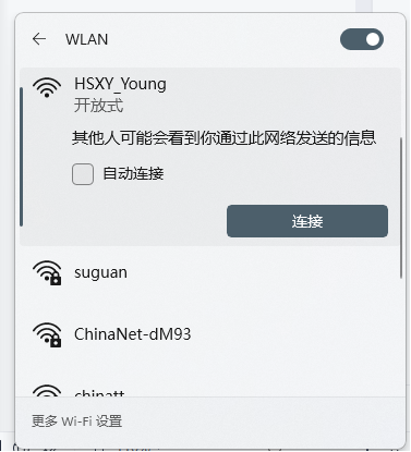 搜索WiFi“HSXY_Young”